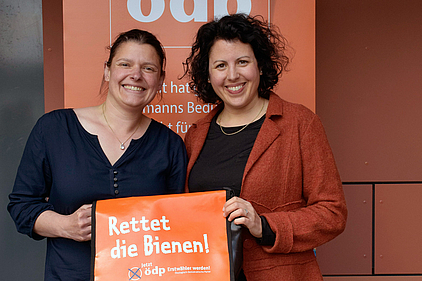 Die bayerische Volksbegehren-Initiatorin Agnes Becker und Europaspitzenkandidatin Manuela Ripa (ÖDP) aus dem Saarland starten eine europaweite…